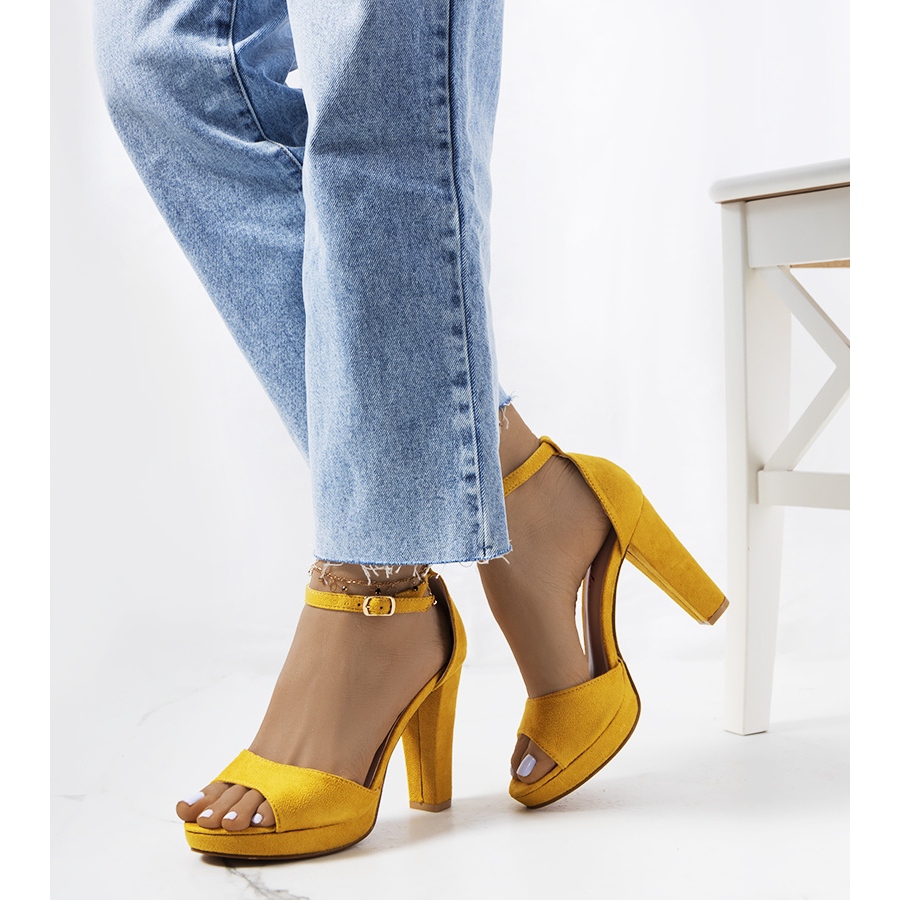 Ne késlekedj! Add hozzá a sárga Saldana sarkú szandált kollekciódhoz, és élvezd a nyarat teljes stílusban!