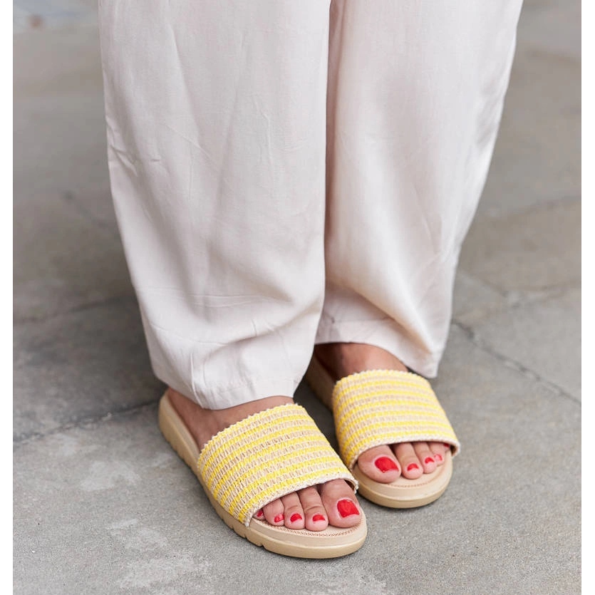 Sárga szőtt kapufalize papucs - stílusos és kényelmes napi rendszerességgel
