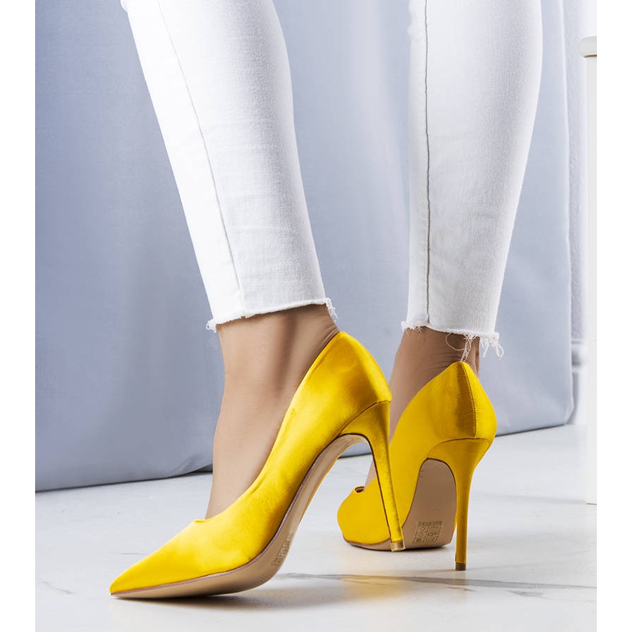 Fedezze fel az eleganciát és a stílust a BM gyártó egyedi Lochlan magassarkúiban. Ezek a sárga, szatén bevonatú pumpák minden női gardrób kötelező darabjai. A hegyes orr és a magas sarkú (10 cm magas) a lábak karcsúságát hangsúlyozzák, a becsúszott kialakítás pedig a könnyű vásárlást biztosítja.