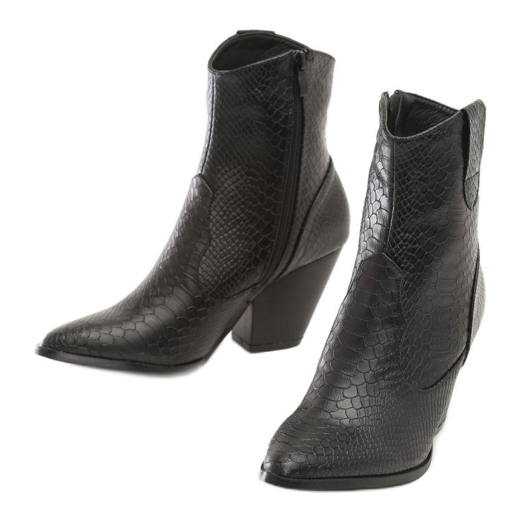Egyedülálló Vices 3329-38 cowboy csizmát mutatunk be klasszikus fekete színben, mely tökéletes kiegészítője lesz minden őszi-téli stílusnak. Ezek az eredeti, praktikus cipzárral rögzíthető cipők kiváló minőségű ökológiai bőrből készültek, amely hatékonyan utánozza a kígyó bőrét.