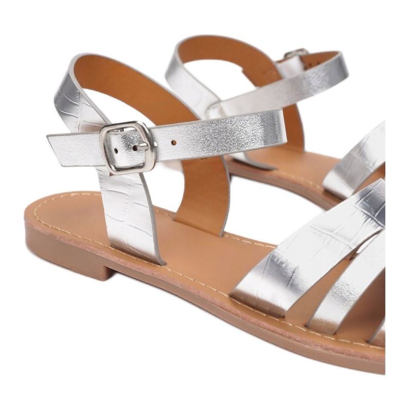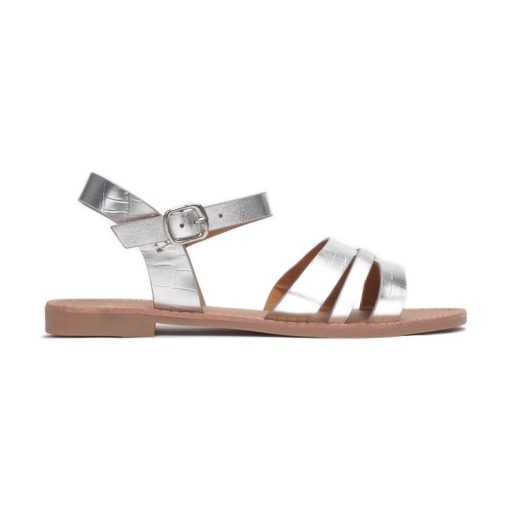 A szandál 1,0 cm magasságú lapos sarkú, ami rendkívül kényelmessé teszi, az orr hiánya pedig szabadságot és légiességet biztosít. A csatos zár lehetővé teszi a könnyű felhelyezést és az egyéni igényekhez való igazítást.