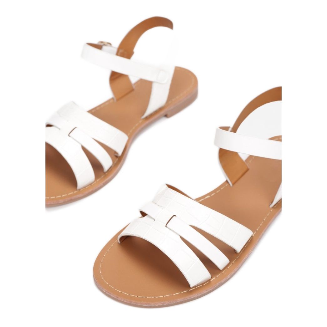 Ezek a divatos szandálok 1,0 cm-es lapos sarkukkal rendelkeznek, így mindennapi sétákhoz és nyári kirándulásokhoz egyaránt alkalmasak. Az orr és a csatos rögzítés hiánya könnyűvé és finomsá teszi őket, a fehér szín pedig rendkívül univerzálissá teszi őket, és sok színhez és mintához passzol.