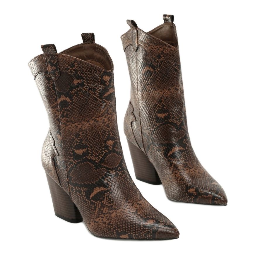 A kiváló minőségű, kígyóbőrt imitáló eco-bőrből készült csizma állatmintával rendelkezik, amely karaktert kölcsönöz minden stílusnak. A cipő belseje enyhén hőszigetelt műszőrmével, ami meleget biztosít a hidegebb napokon. A hegyes orr és a 8 cm magas kúpos sarok karcsú alakot kölcsönöznek, így nemcsak kényelmesek, de rendkívül nőiesek is.