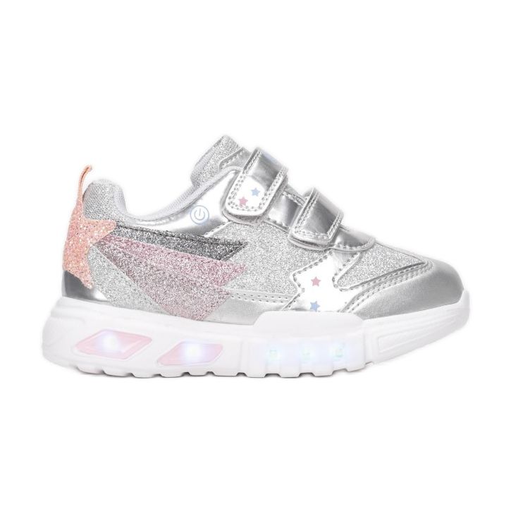 Ezeket az alacsony sportcipőket praktikus tépőzáras rögzítés jellemzi, amely megkönnyíti a fel- és levételüket. Ennek köszönhetően minden lány könnyen megbirkózik egyedül és élvezheti a függetlenséget. Az ezüst szín eleganciát ad, és különféle stílusokban remekül néz ki.