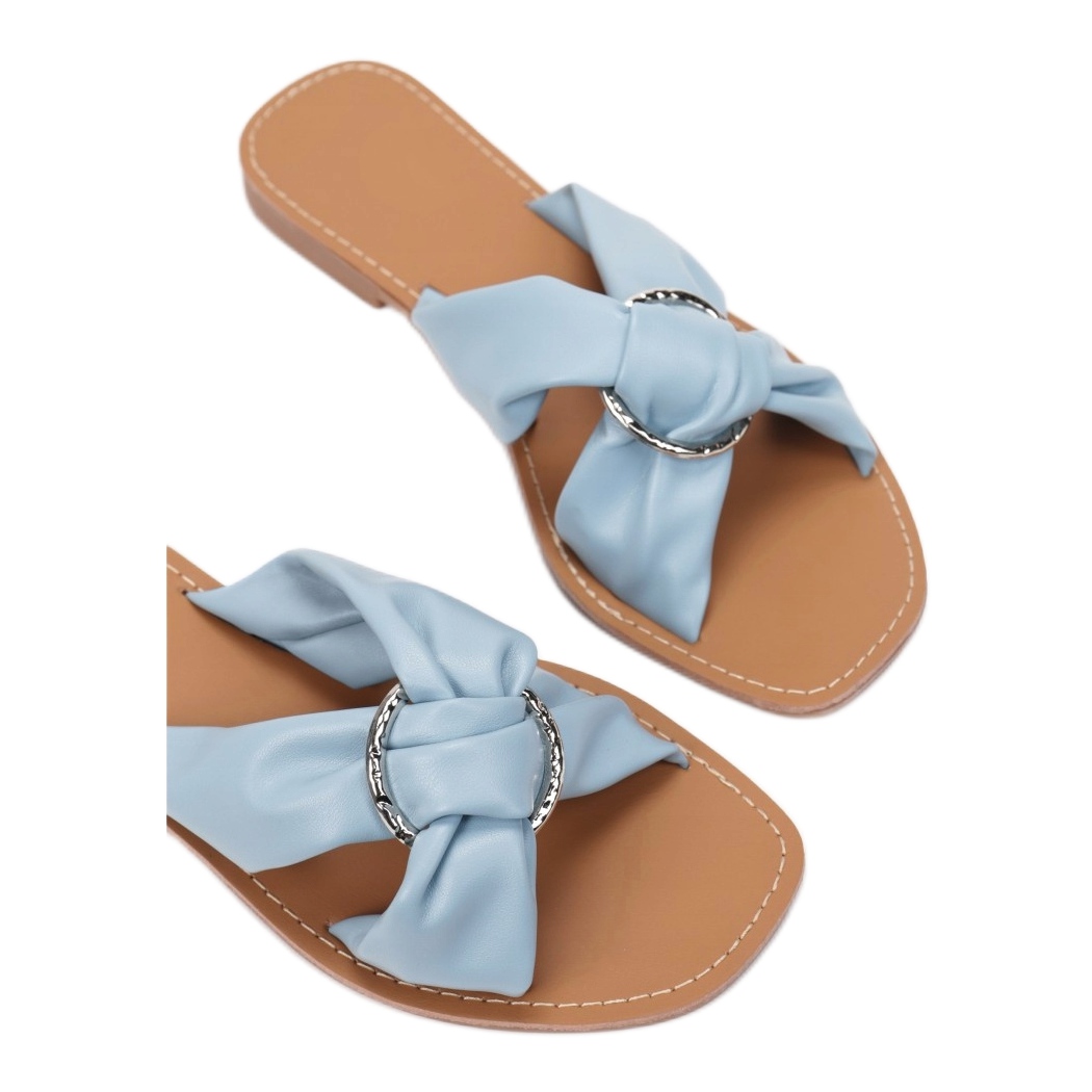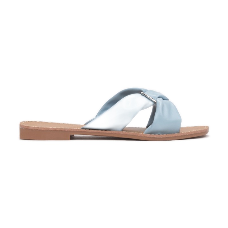 A papucsok kialakítása elöl széles, összekapcsolt pántokon alapul, amelyek nem csak stabilitást biztosítanak, de a kerek felvitelnek köszönhetően divatos akcentust is adnak. A kiváló minőségű ökobőrből készült papucsok nem csak stílusosak, de környezetbarátak is.
