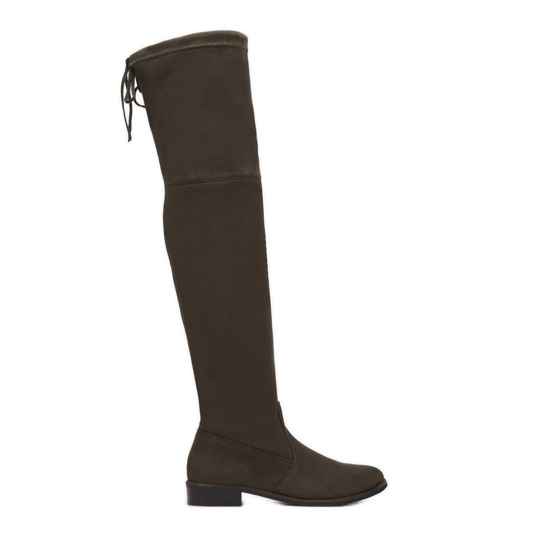 Fedezze fel az eleganciát és a kényelmet a Vices T060-61 zöld csizmával. Ez a lapos térdre érő csizma kiváló minőségű öko-velúrból a tökéletes megoldás az őszi napokra. Az állítható felsőrésznek köszönhetően alakodhoz igazíthatod őket, ami nem csak stílusossá, de funkcionálissá is teszi őket.