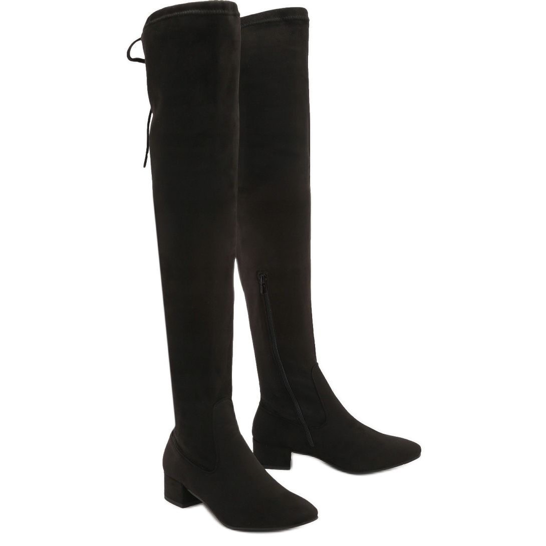 A Vices T113-1 fekete csizma tökéletes választás azoknak a nőknek, akik értékelik az eleganciát és a kényelmet. Ezek az egyedi, térd feletti muskétások, melyek öko-velúrból készültek mélyfekete színben, tökéletesen illeszkednek a legújabb divatirányzatokhoz. Az alacsony, 5 cm magas sarkának köszönhetően ezek a cipők egész napos viselési kényelmet biztosítanak még azoknak a nőknek is, akik inkább kerülik a magassarkút.