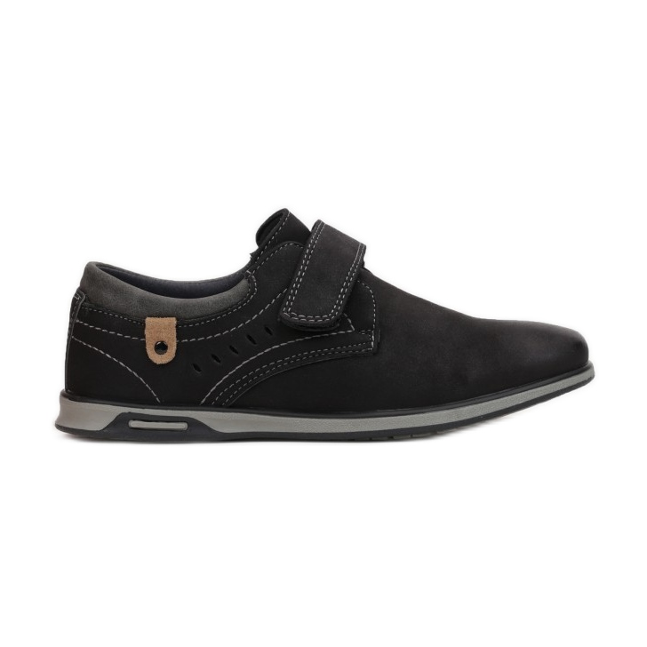 A kiváló minőségű szintetikus nubukból készült cipő tartós és könnyen kezelhető. A kontrasztos, kerek szegecsekkel és gondos varrással ellátott fül karaktert ad, az ökobőr betétek pedig elegáns megjelenést kölcsönöznek nekik. A merev sarokpult megfelelő alátámasztást biztosít a lábnak, a bőr talpbetét pedig hosszú viselés esetén is kényelmet garantál.
