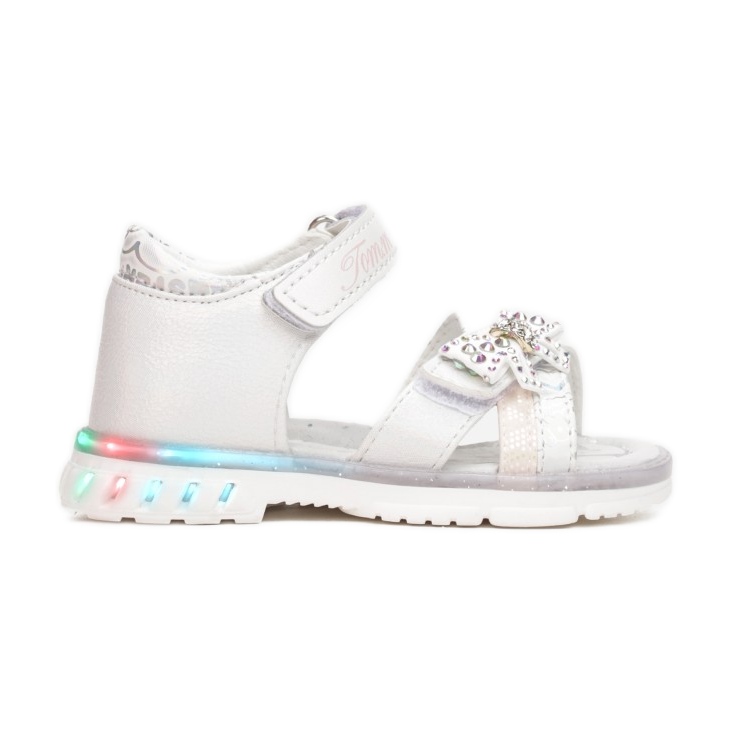 A Vices T9225-LED-71 fehér szandál tökéletes választás minden kis fashionista számára, aki szeretne kitűnni a tömegből! Ezek a fehér szandálok nyitott orrral és felépített sarokkal ötvözik az eleganciát és a funkcionalitást. A futófelülettel ellátott lapos talpra szerelt szandálok beépített színes LED-lámpákkal rendelkeznek, amelyek minden bizonnyal felkeltik a figyelmet, és bármilyen zoknit ragyogóvá varázsolnak.
