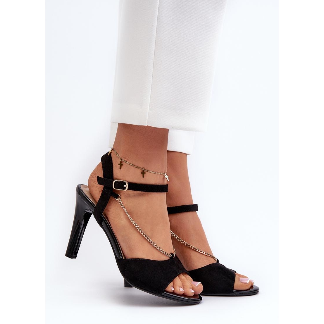 Ezek a szandálok nemcsak az esztétikával, hanem a funkcionalitással is örülnek. Az állítható övnek köszönhetően, amelynek csatja van, könnyen hozzáigazíthatja azokat a lábához, ami hosszú távú kopás közben is biztosítja a kényelmet. A 9,5 cm magas PIN -kód formájában lévő magas sarok hozzáadja az eleganciát, és hangsúlyozza az ábrát, és a finom dekoratív lánc egyedi karaktert ad nekik.