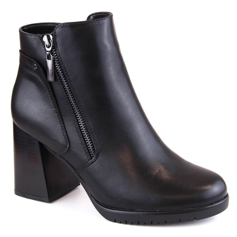Elegáns és meleg Sergio Leone csizma, amely az őszi téli szezon hűvösebb napjain fog működni. A magas boka felső, stabil oszlop, amelynek magassága 8,5 cm, és puha szigetelés és szőr belső garantálja a kényelmet és a hideg elleni védelmet, és a klasszikus fekete színek sok stílusnak felelnek meg.