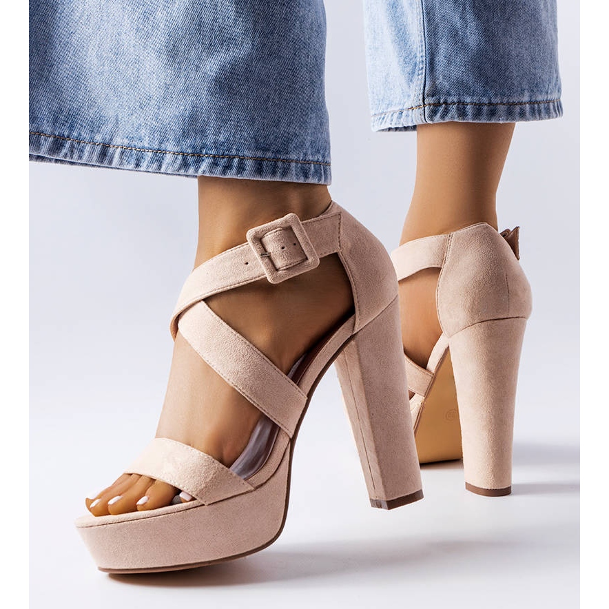 Részletek: Sevier bézs színű blokk szandál