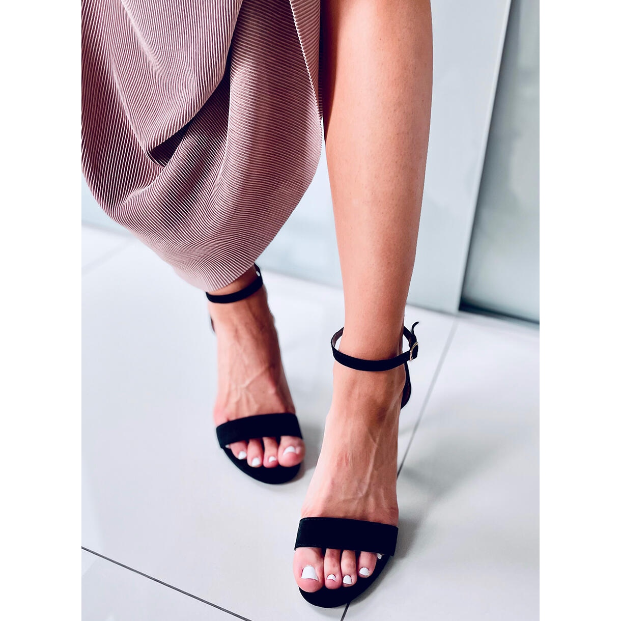 A szandálok ökológiai velúrból készültek, ami nem csak az egyedi megjelenést, hanem a környezet ápolását is garantálja. A klasszikus szabás és a bokát finoman díszítő finom pánt rendkívül elegánssá és stílusossá teszi őket. A szandálok belseje ökológiai bőrrel van bélelve, amely viselés közben biztosítja a kényelmet és a kényelmet.