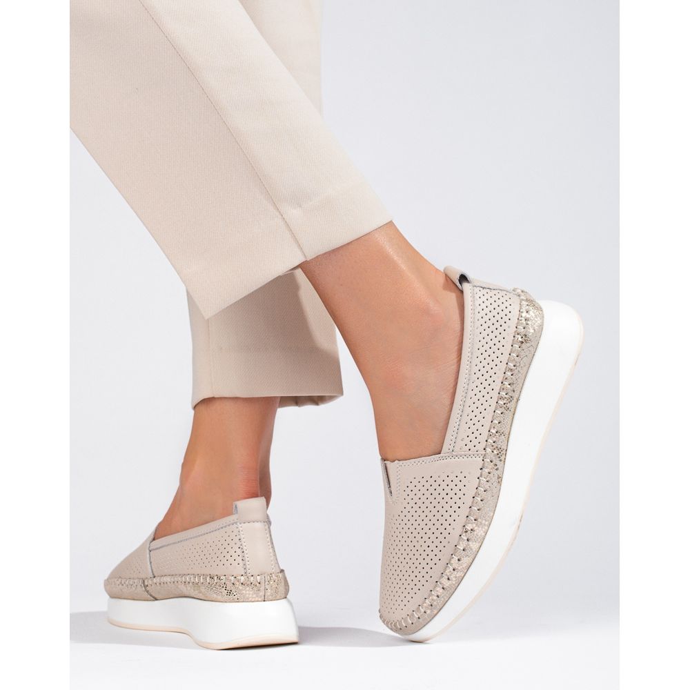 A Shelovet bézs áttört bőrcipő abszolút klasszikus a neves SHELOVET gyártó női lábbelii között. Ezek az egyedi cipők ötvözik az eleganciát a mindennapi kényelemmel, tökéletes harmóniát kínálva az alkalmi stílusnak a klasszikus eleganciával. Univerzális tulajdonságaiknak köszönhetően tökéletesek mindennapi kirándulásokhoz és különféle ünnepségekhez.