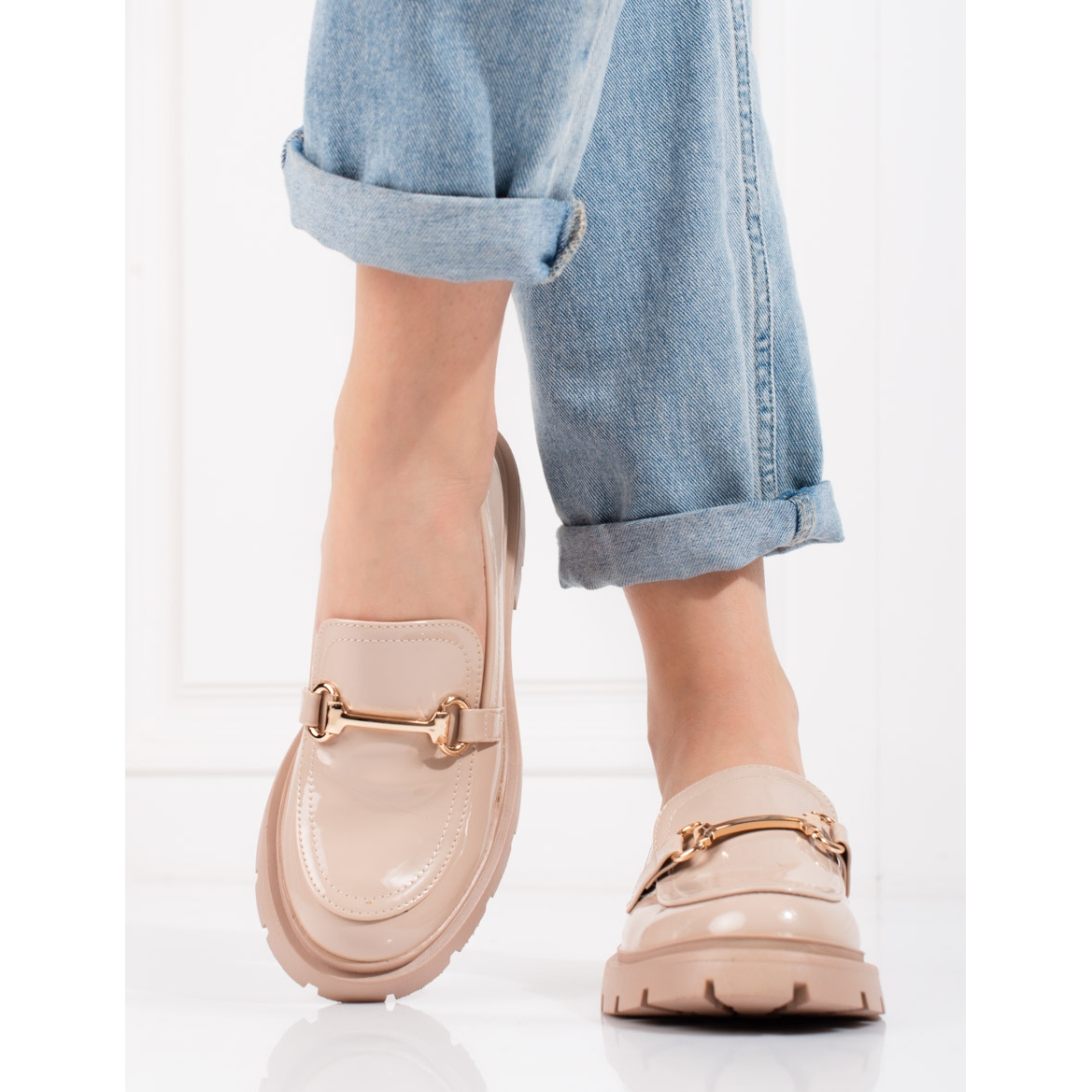 A Shelovet bézs lakkbőr cipői a tökéletes választás azoknak a nőknek, akik értékelik az eleganciát és a mindennapi kényelmet. Ezek a klasszikus naplopók mind az alkalmi, mind a formálisabb stílusban jól használhatók, így minden tavaszi és nyári ruhatár pótolhatatlan elemévé válnak.