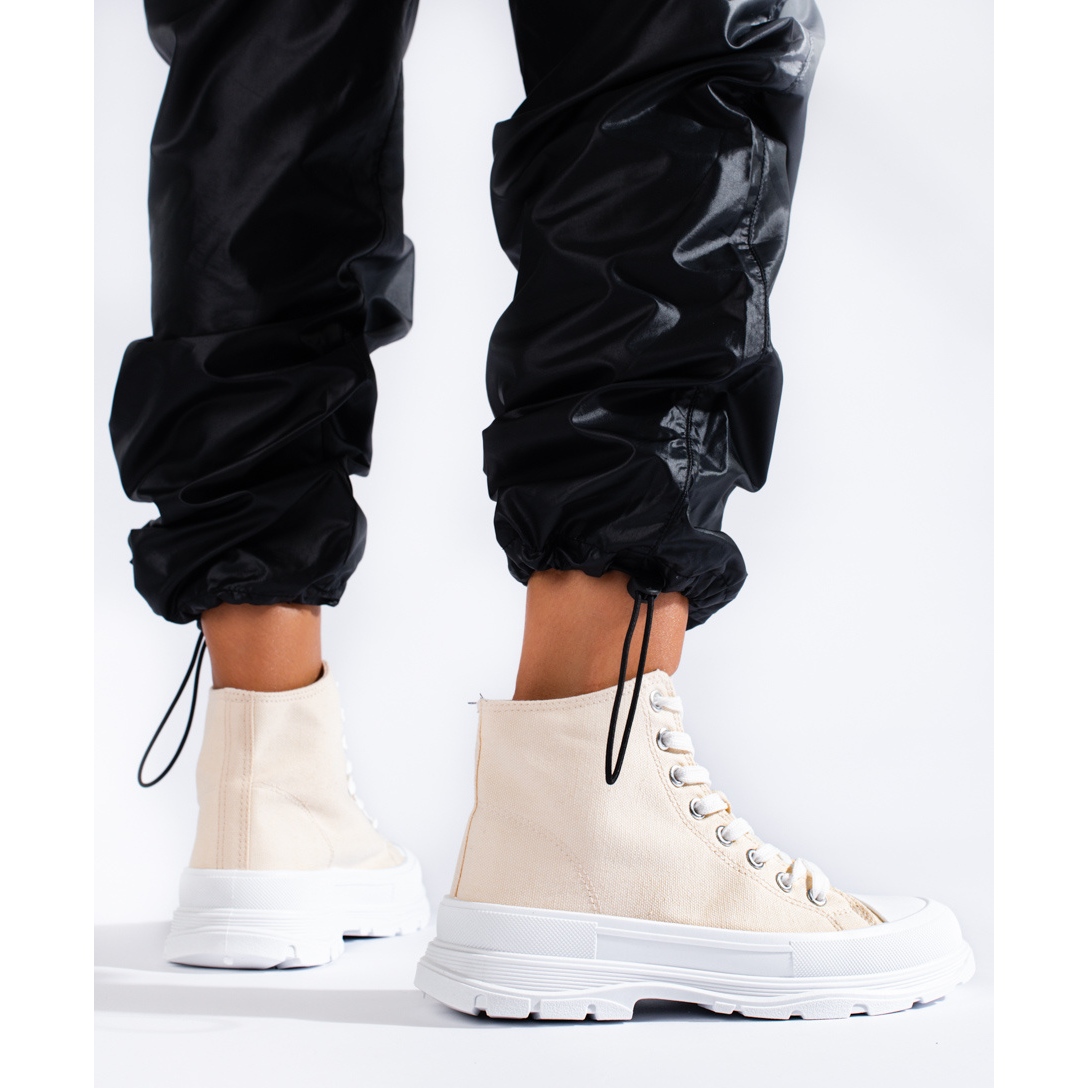 Részletek: Shelovet női magas szárú textil tornacipő bézs