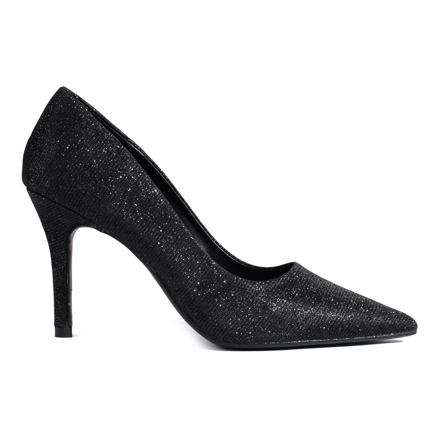 SHELOVET Shelovet női magassarkú fekete, csillámos
