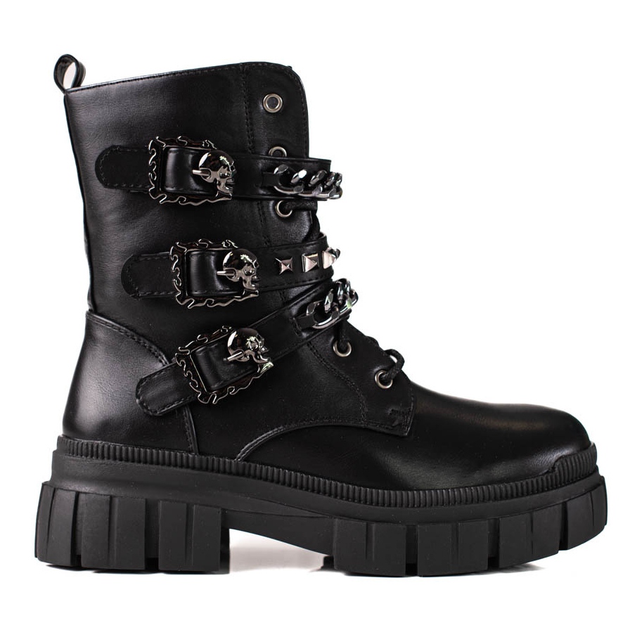 A kiváló minőségű műbőrből készült bokacsizma nem csak esztétikus, hanem tartós is. A további díszítések strasszok és szegecsek formájában sziklás megjelenést kölcsönöznek nekik, a futófelülettel ellátott szintetikus talp pedig jó tapadást biztosít különféle felületeken. Az 5 cm-es sarokkal és a 3 cm-es platformpal a Shelovet dolgozói tökéletesek az őszi és téli napokra, kényelmet biztosítva a mindennapi tevékenységek során.