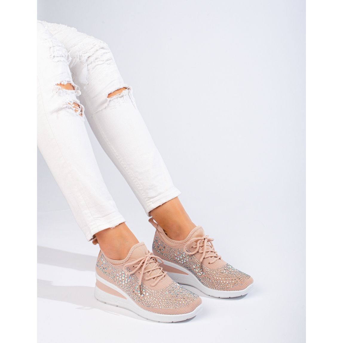 SHELOVET Shelovet rózsaszín textil ék alakú tornacipő
