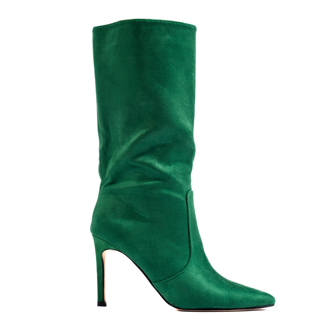 SHELOVET Shelovet zöld velúr magas sarkú csizma