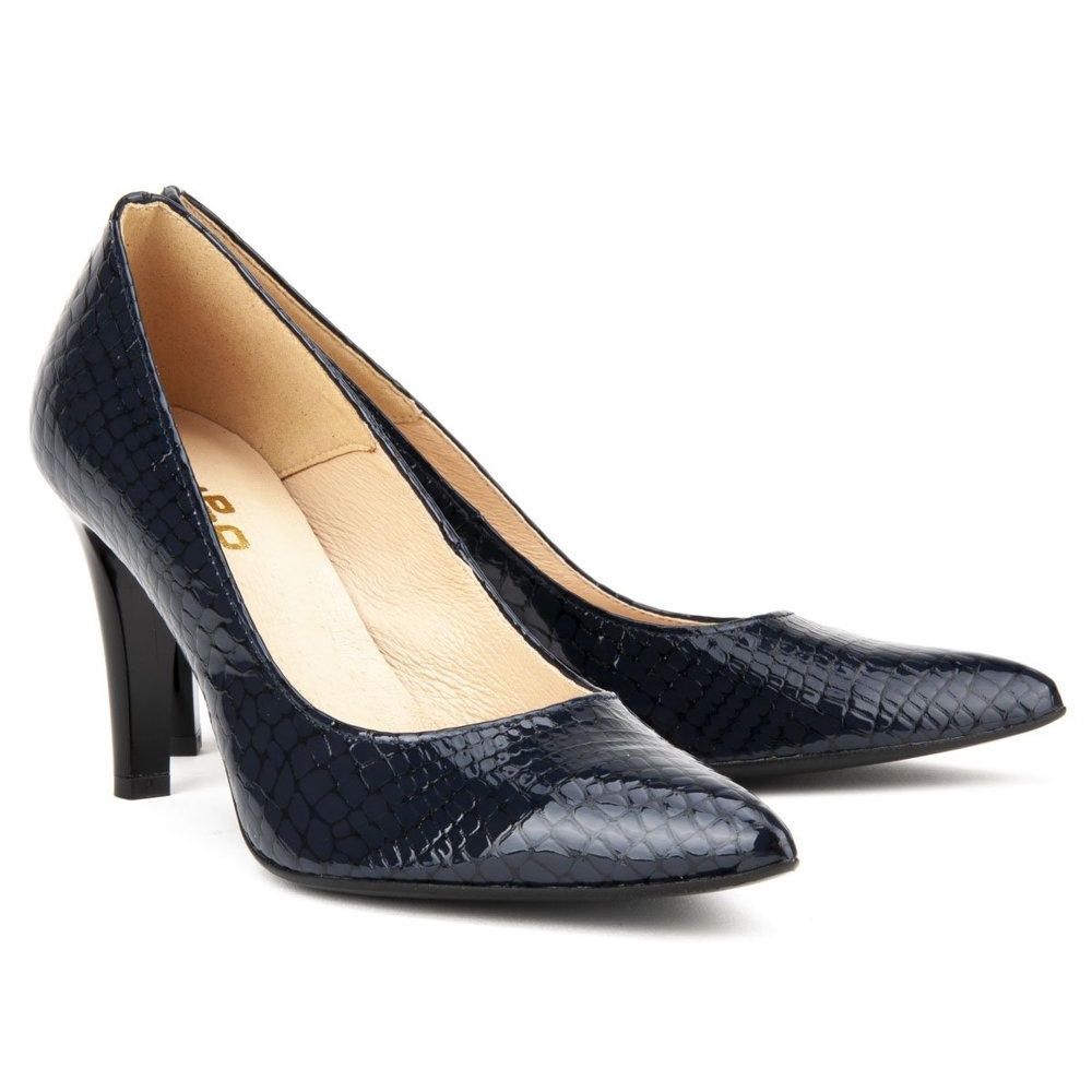 A KeeShoes kollekció F155 Navy Crocodile modellje tökéletes az elegáns alkalmakra, klasszikus dizájnjának köszönhetően pedig sok stílushoz passzol – a ruháktól a nadrágokig. A szintetikus talpnak köszönhetően a pumpák könnyűek és rugalmasak, ami minden lépésnél biztosítja a stabilitást.