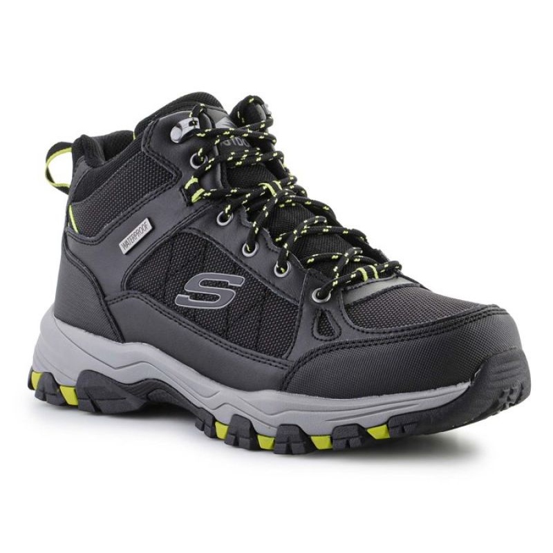SKECHERS SELMEN - Melano 204477 -BLK cipő tartós, kényelmes és vízálló modell a magas kültéri cipőkről, amely nyomvonalakon és igényes körülmények között fog működni. Ha stabil cipőt keres, jó párnázással és tágas lábával - érdemes megfontolni ezt a párot.