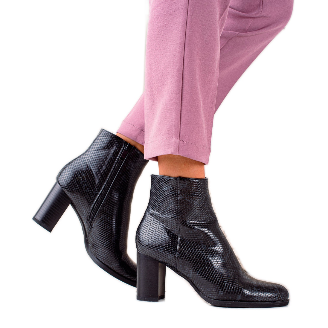 Részletek: TRENDI Snake Print Boots On A Post fekete