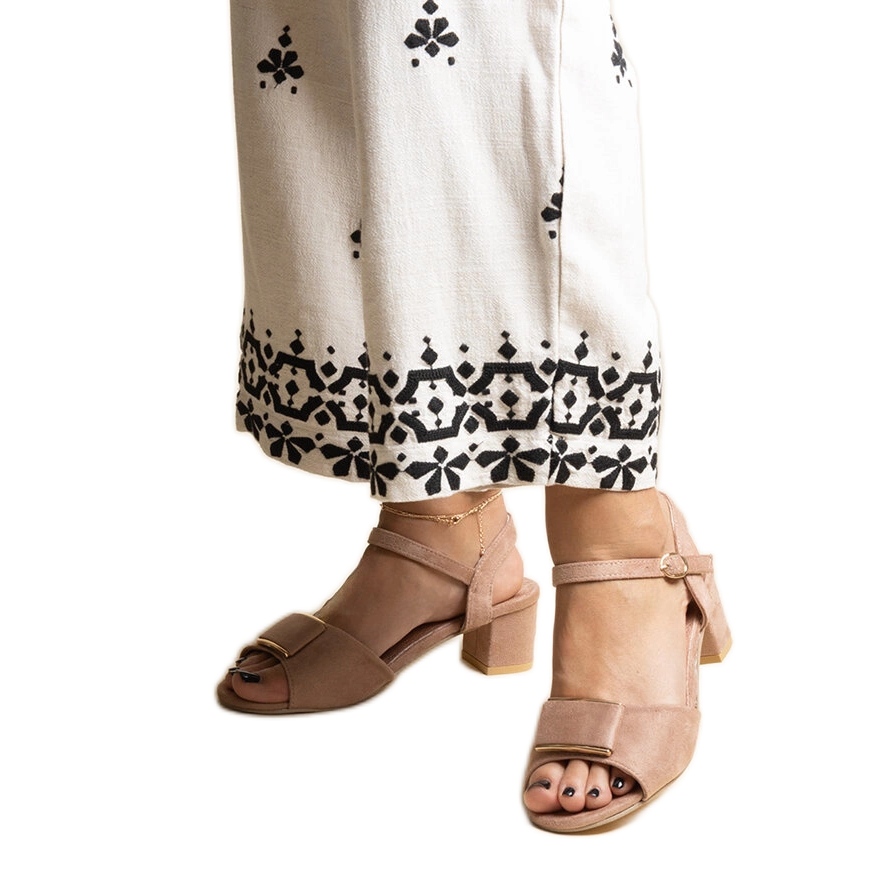 A sötét bézs szandál az alacsony Frederica poszton elengedhetetlen a nyári napokra, amelyek ötvözik az eleganciát és a kényelmet. Ezek a nők szandáljai, kiváló minőségű bőr ökológiai velúrból készültek, nemcsak szépnek tűnik, hanem hosszú órákig biztosítják a kényelmet. Klasszikus vágásuk, alacsony sarkú, 5 cm -es magasságú, tökéletes választásuk a város körüli mind a mindennapi sétákhoz, mind az esti kirándulásokhoz.
