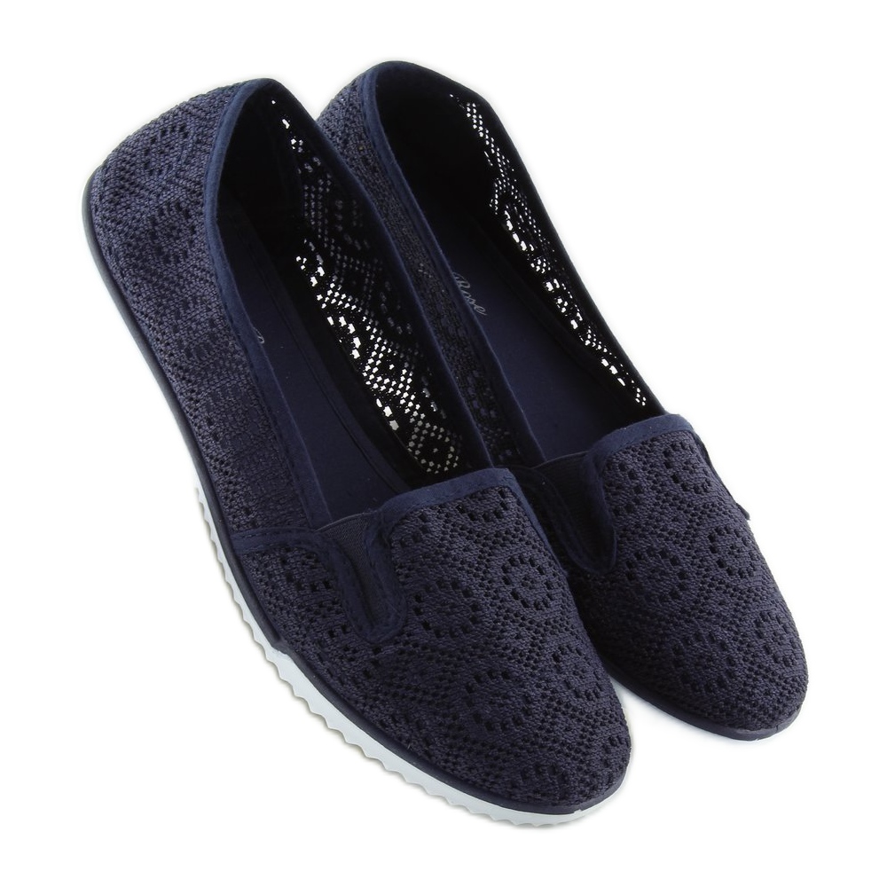 Bemutatjuk az MN70 D.BLUE sötétkék csipke felbújós cipőket - tökéletes kiegészítője minden nő nyári ruhatárának! Ezek a finom felbújós tornacipők finom megjelenésével gyönyörködtetnek, amely kiemeli lányos karakterüket. Puha, áttört anyagból készültek, nem csak tetszetős dizájnt, de maximális viselési kényelmet is biztosítanak.