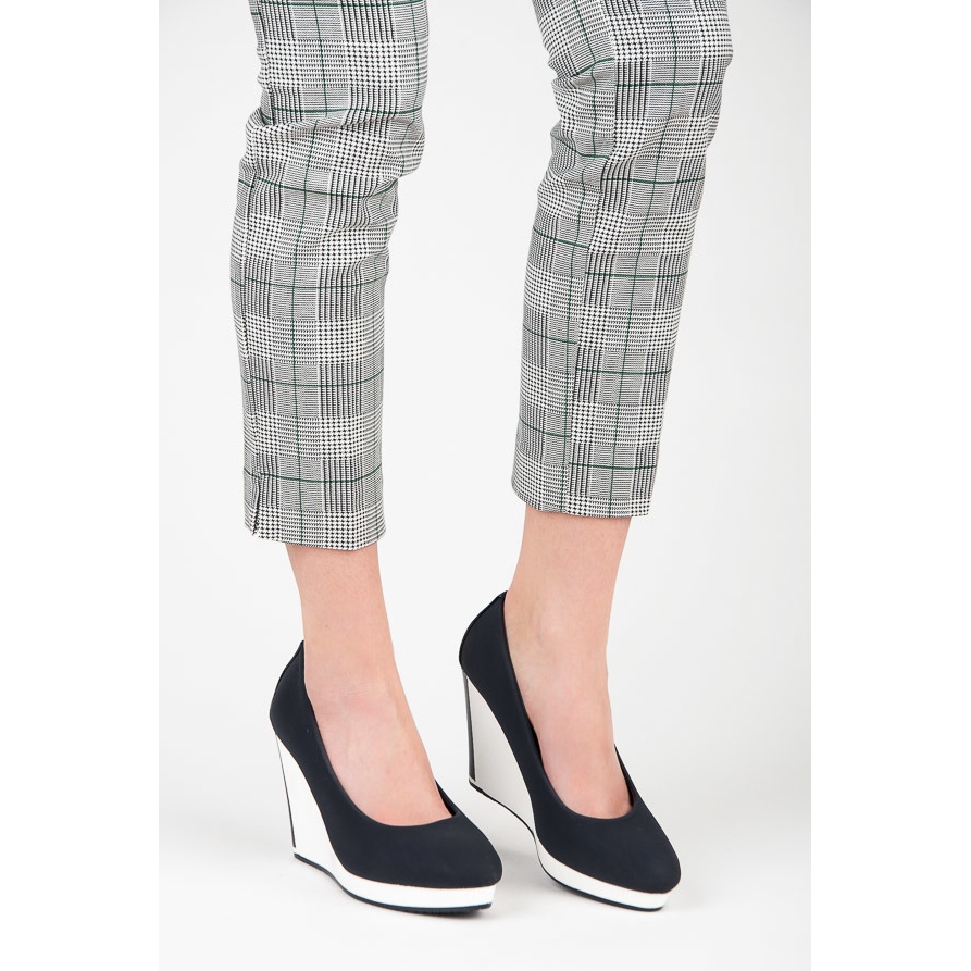 A pumpák magas, 10 cm-es ékkel rendelkeznek, ami karcsúbbá teszi a sziluettet és egyben biztosítja a stabilitást viselés közben. A kerek lábujjnak köszönhetően a lábak kényelmesek, ami lehetővé teszi a hosszú távú használatot fáradtság nélkül.