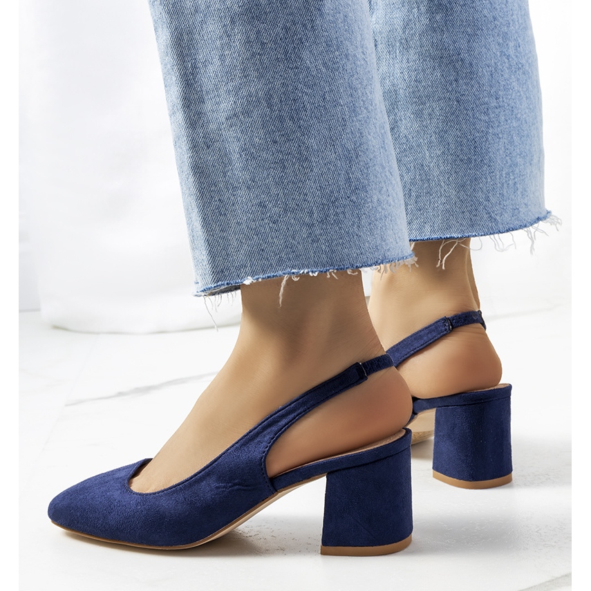 Részletek: Sötétkék pumpák nyitott sarokkal a Panovától