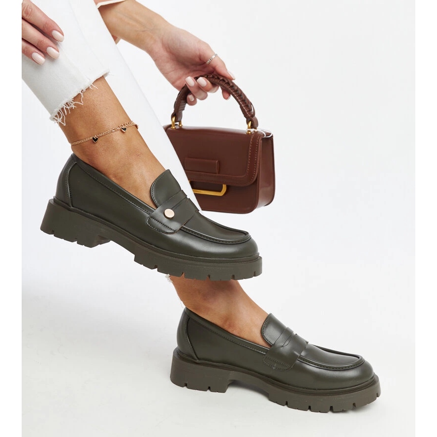 Inna marka Sötétzöld Eco bőr mokaszinok Mladenka