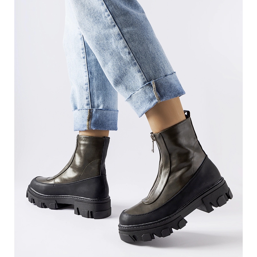 Inna marka Sötétzöld masszív bokacsizma Morley cipzárral