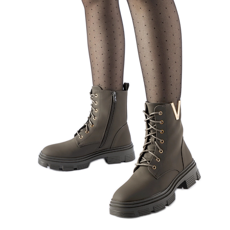A stílusos khaki fru csizmák a városi elegancia tökéletes kombinációja a mindennapi funkcionalitással. A matt felület és az időtlen, sötétzöld árnyalat hozzáadja a stilizáció jellegét, és a szigetelt belső tér kényelmet és védelmet nyújt a hideg ellen. A kerek orr és a lapos sarok a cipőt még egy hosszú nap folyamán kényelmesebbé teszi, és a kötés és a cipzár tökéletes illesztést tesz lehetővé.