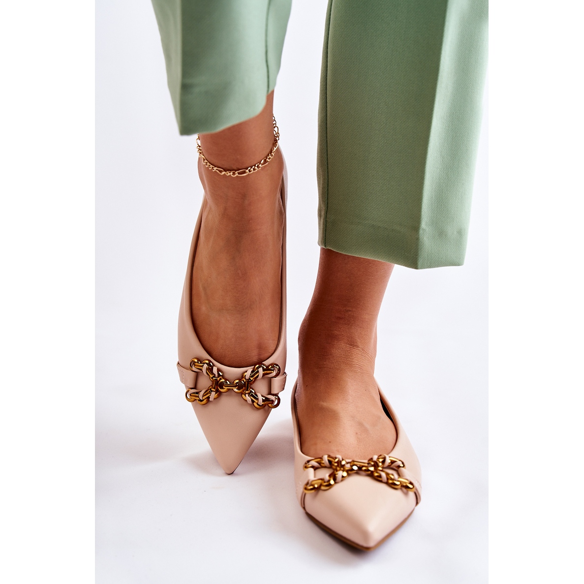 WS1 WS1 Spitz női balerinák bézs Carlos-dísszel