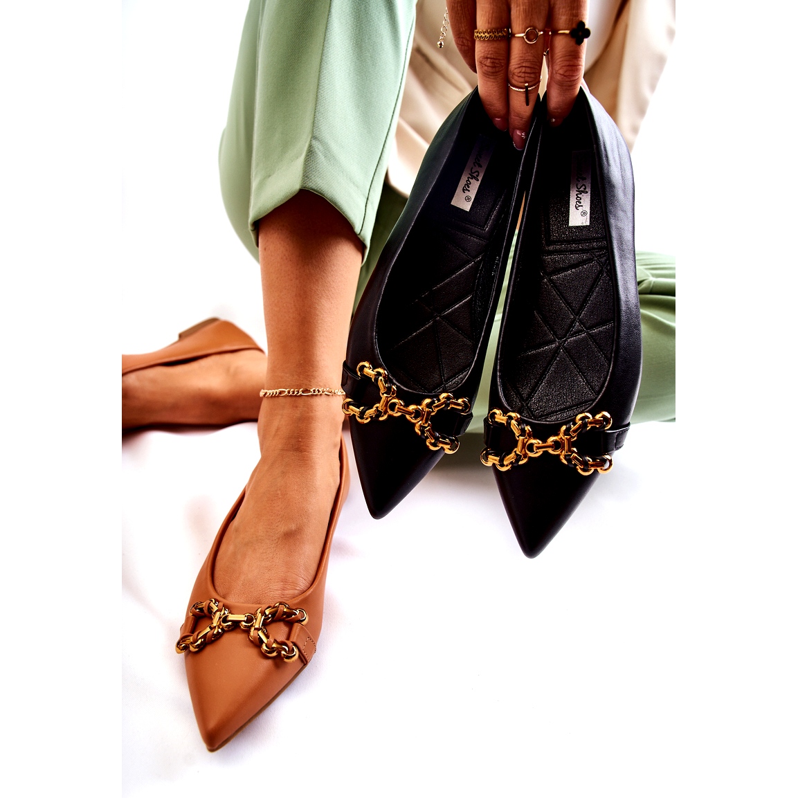WS1 WS1 Spitz női balerinák, fekete Carlos-dísszel