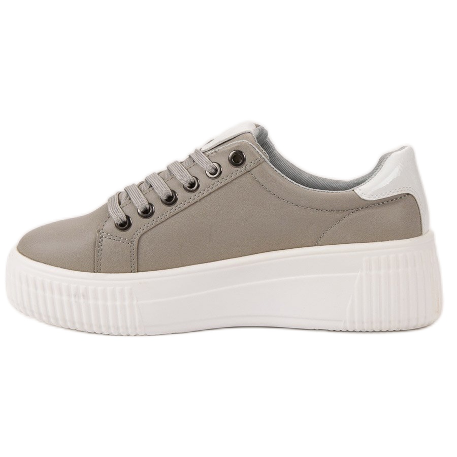Fedezze fel a kényelem és a stílus új dimenzióját a Kylie márka platformos sportcipőivel. Az elegáns szürke árnyalatú modell tökéletesen illeszkedik a különböző stílusokhoz, és divatos akcentust ad hozzájuk. A kontrasztos fehér talp nemcsak a kényelmet növeli, hanem modern karaktert is kölcsönöz a cipőnek.