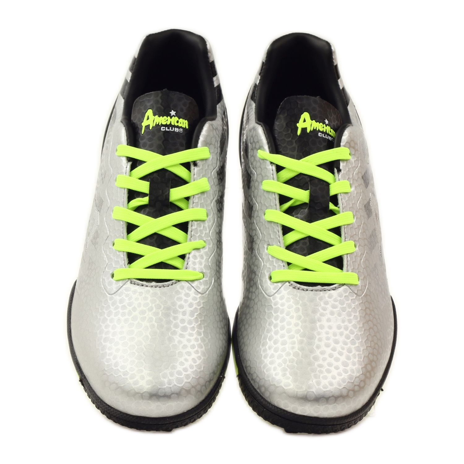 Az American Club 170603 fiú sportcipő, szürke és fekete, ezüst és neonzöld kiegészítőkkel, tökéletes megoldás fiatal futballisták számára. A kiváló minőségű szintetikus anyagokból készült cipők kialakítása nemcsak a tartósságot, hanem a viselési kényelmet is biztosítja.