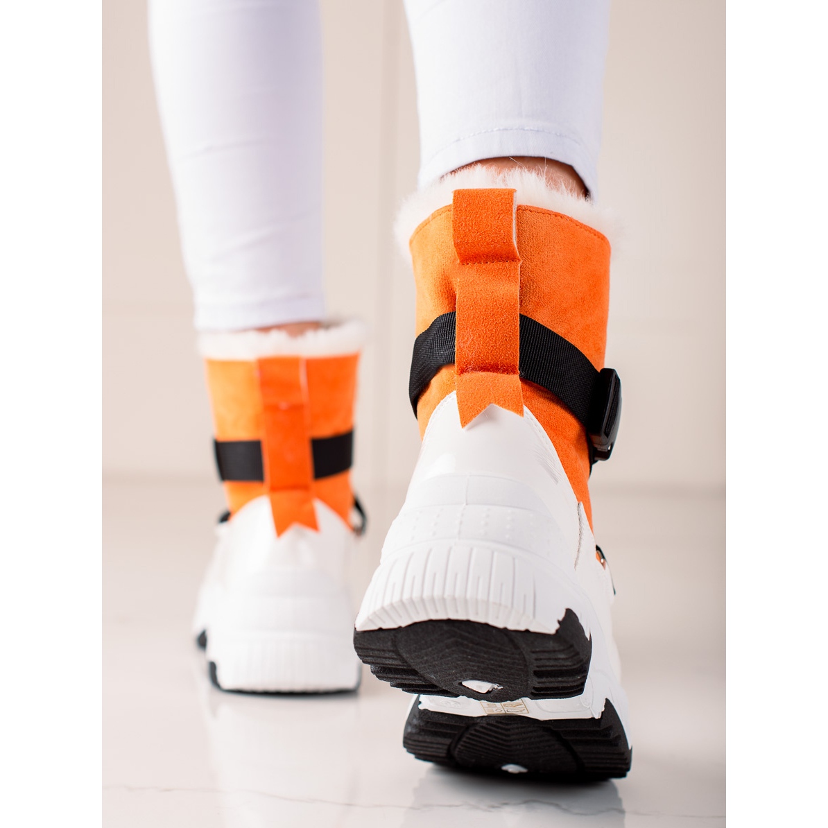 Részletek: TRENDI Sportos hócsizma fehér narancs