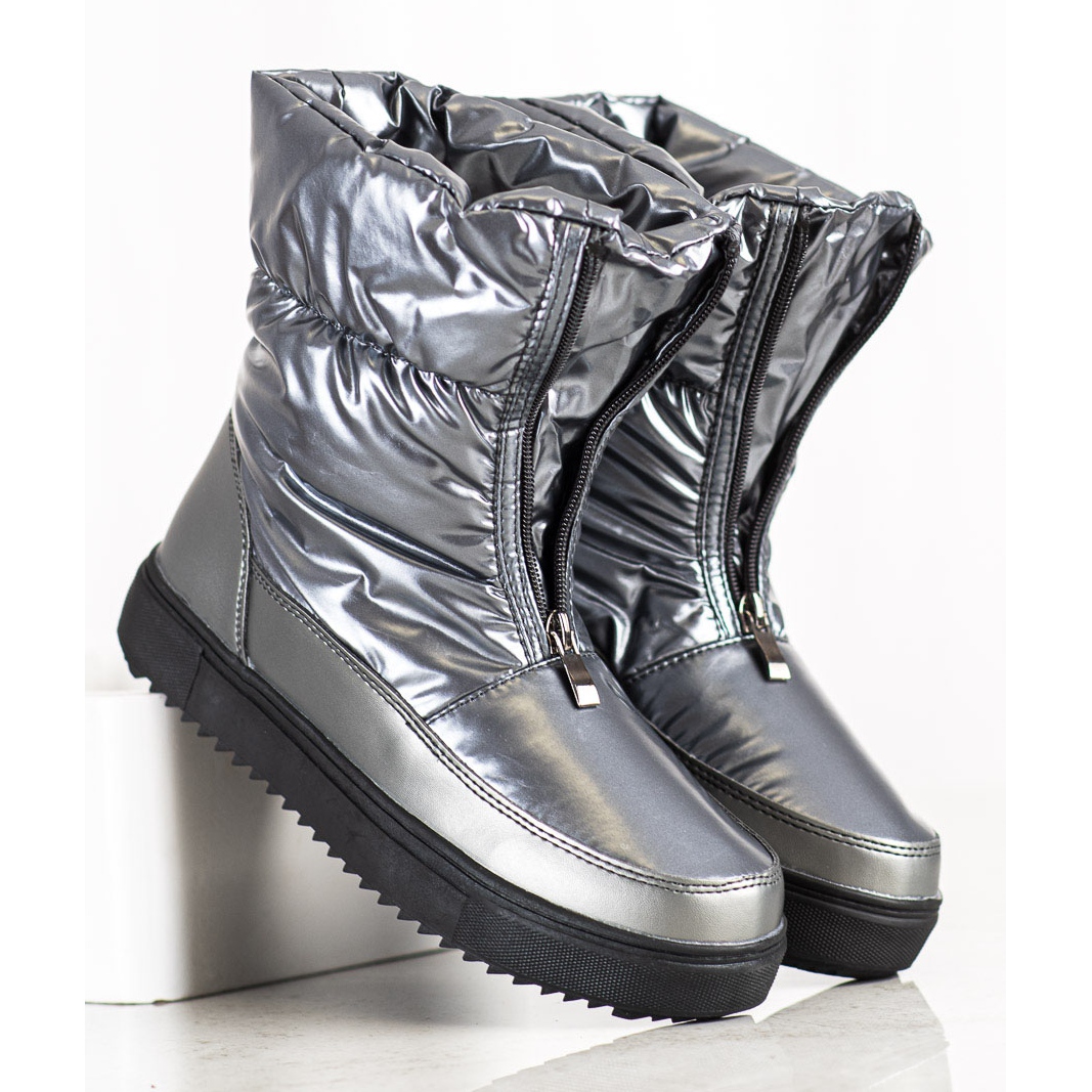 S. BARSKI Ezüst A szürke S.BARSKI hócsizma tökéletes választás az őszi/téli szezonra azoknak a modern nőknek, akik értékelik a kényelmet és a stílust egyaránt. Ezek a magas havas csizmák ötvözik az eleganciát és a funkcionalitást, és lezser jellegük miatt tökéletesek a mindennapi stílushoz.