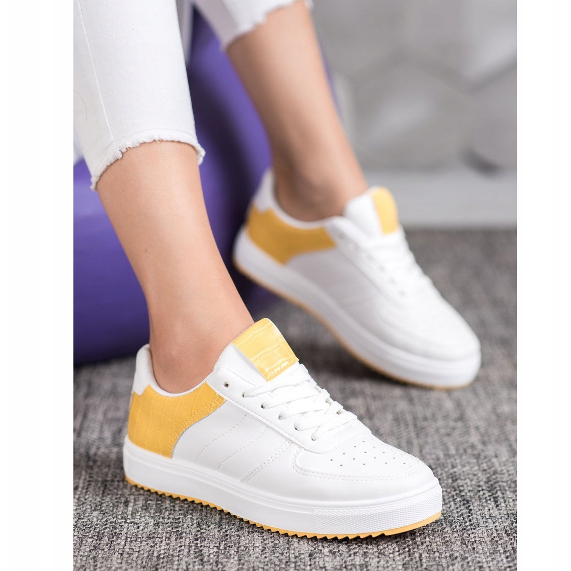 A stílusos fehér SHELOVET platformcipő tökéletes választás a modern nők számára, akik értékelik a kényelmet és az eredeti stílust. Ezeket a sportcipőket sárga talp és érdekes betétek jellemzik a felsőrészen, amelyek eredeti megjelenést kölcsönöznek nekik, és tökéletesek a mindennapi stílus diverzifikálásához.
