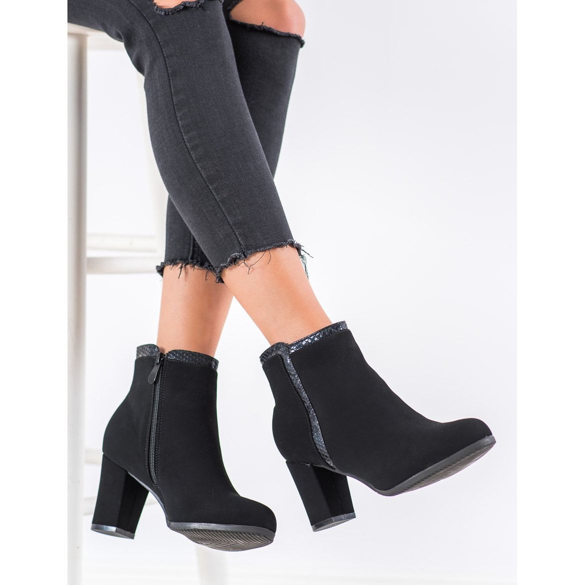 A csizmák cipzárral vannak rögzítve, ami megkönnyíti a fel- és levételüket. A puha, zárt sarok és a szigetelés tökéletessé teszi őket a hidegebb napokra, meleget és kényelmet biztosítva. A divatos dekoratív díszítés egyedi karaktert kölcsönöz nekik, amely illeszkedik az aktuális trendekhez.