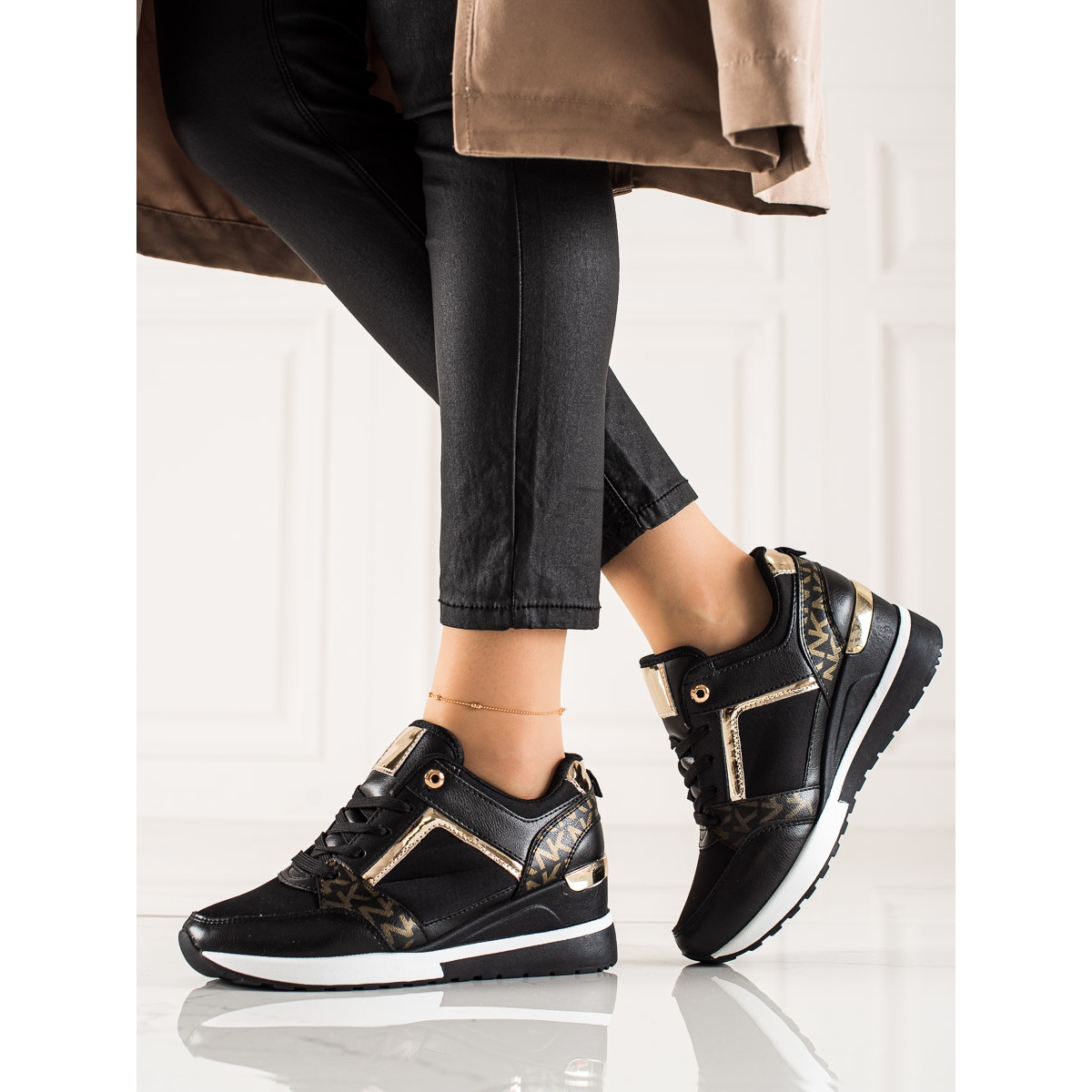Fedezze fel a divat új dimenzióját a TRENDI márka Stílusos Wedge Sneakers-eivel. Ezek az egyedi női cipők a kényelmet és az eleganciát ötvözik, így tökéletes választás a mindennapi kirándulásokhoz. Klasszikus fekete színű cipők finom arany díszítéssel, amely eredetiséget ad minden stílusnak.