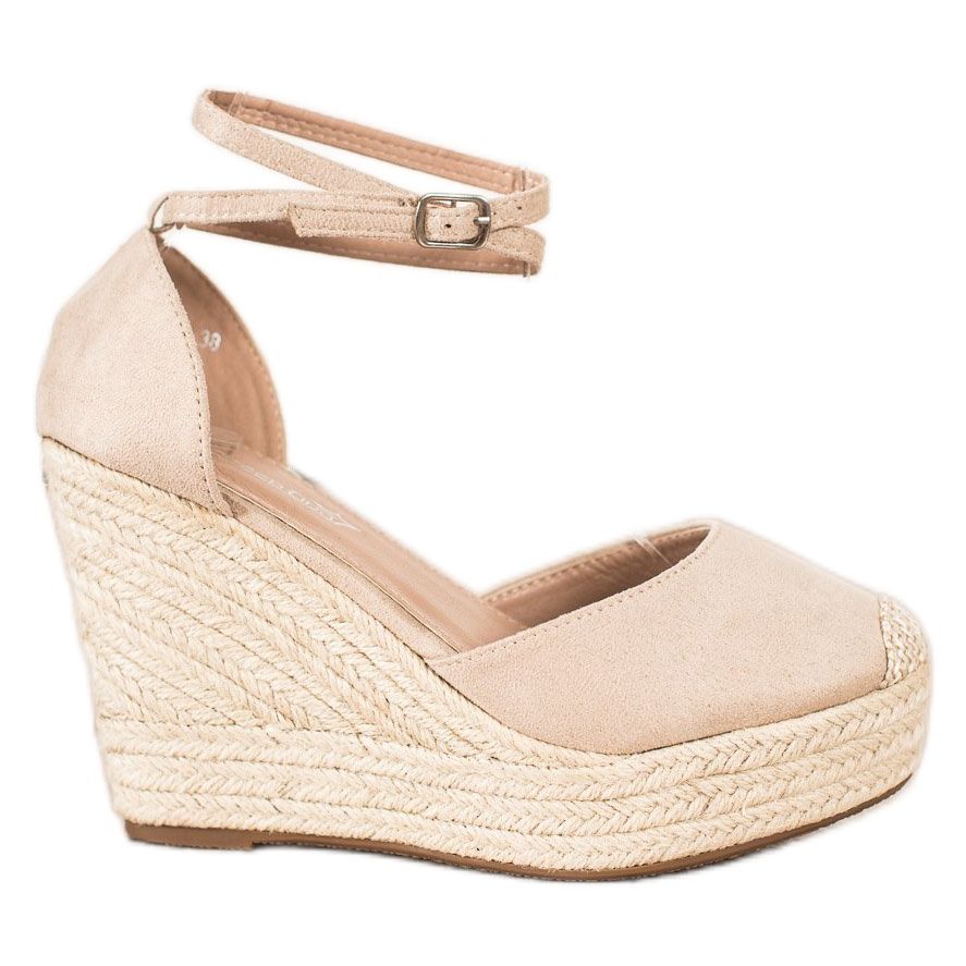 Részletek: Queentina Stílusos espadrilles magas ék bézs