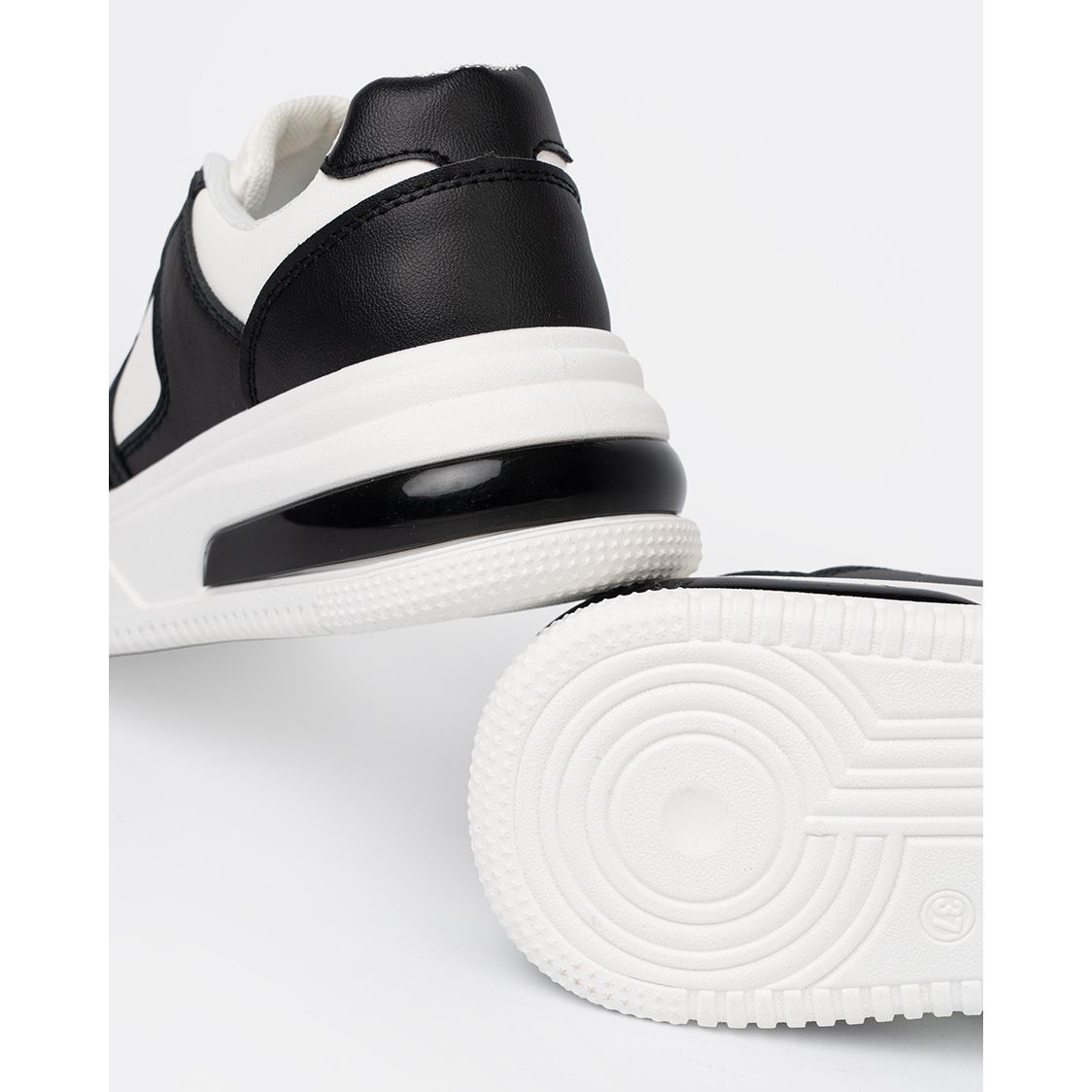 A fekete -fehér színek rendkívül univerzálisak, ami lehetővé teszi, hogy sok ruhát könnyen megfeleljen. A bőr és a textilbélés utánzata felső része nemcsak az esztétikát, hanem a tartósságot és a kényelmet is garantálja. A kerek orr egy olyan elem, amely a cipőt nagyon kényelmessé teszi a lábak számára.
