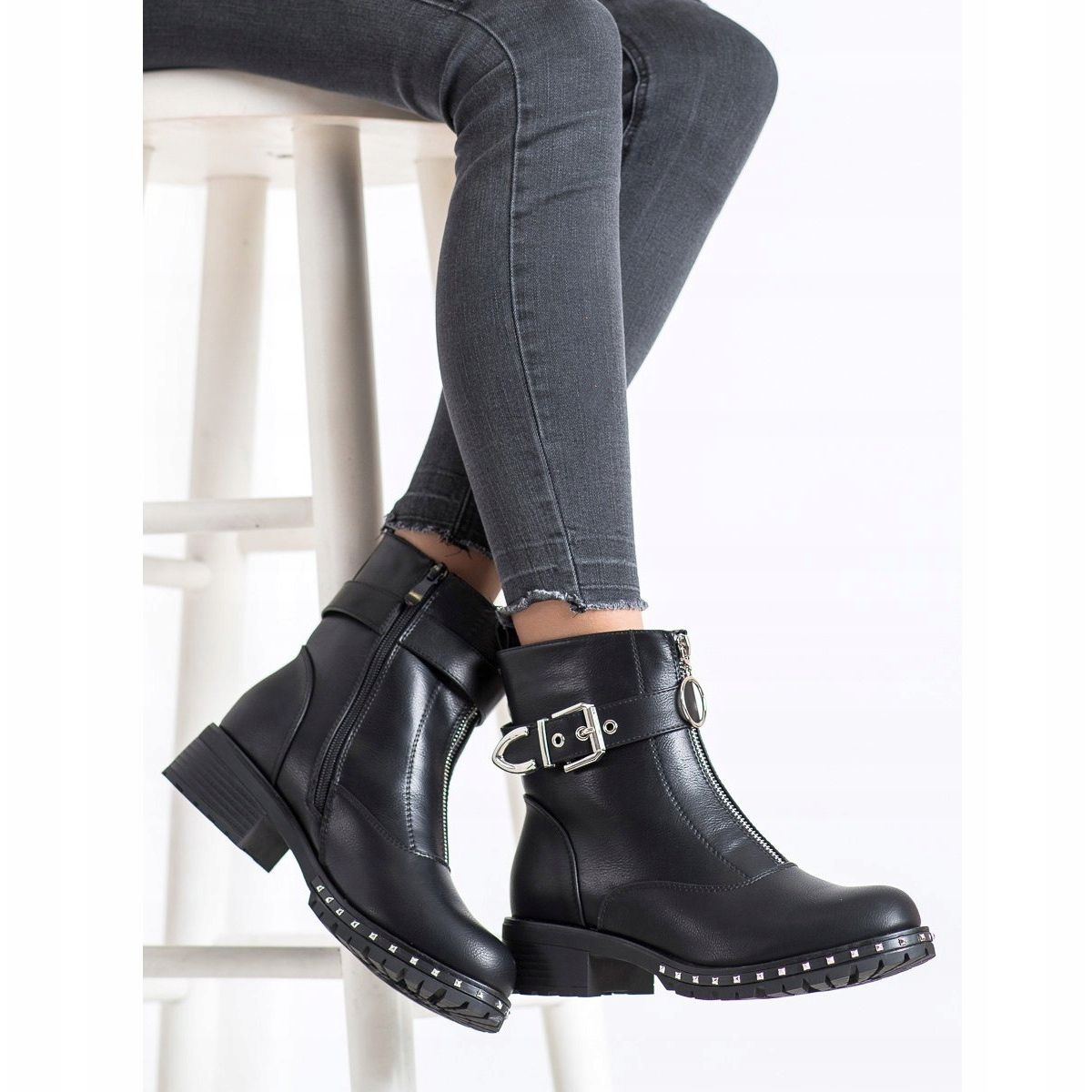 A Black Kayla dolgozóit olyan dekoratív részletek jellemzik, mint az ezüst szegecsek, a csat és a látványos cipzár, amelyek divatos megjelenést kölcsönöznek. A csat és a cipzáros rögzítés megkönnyíti a felhelyezést, a felsőrész szélessége (26 cm) és a G szélesség pedig kényelmes viseletet biztosít.