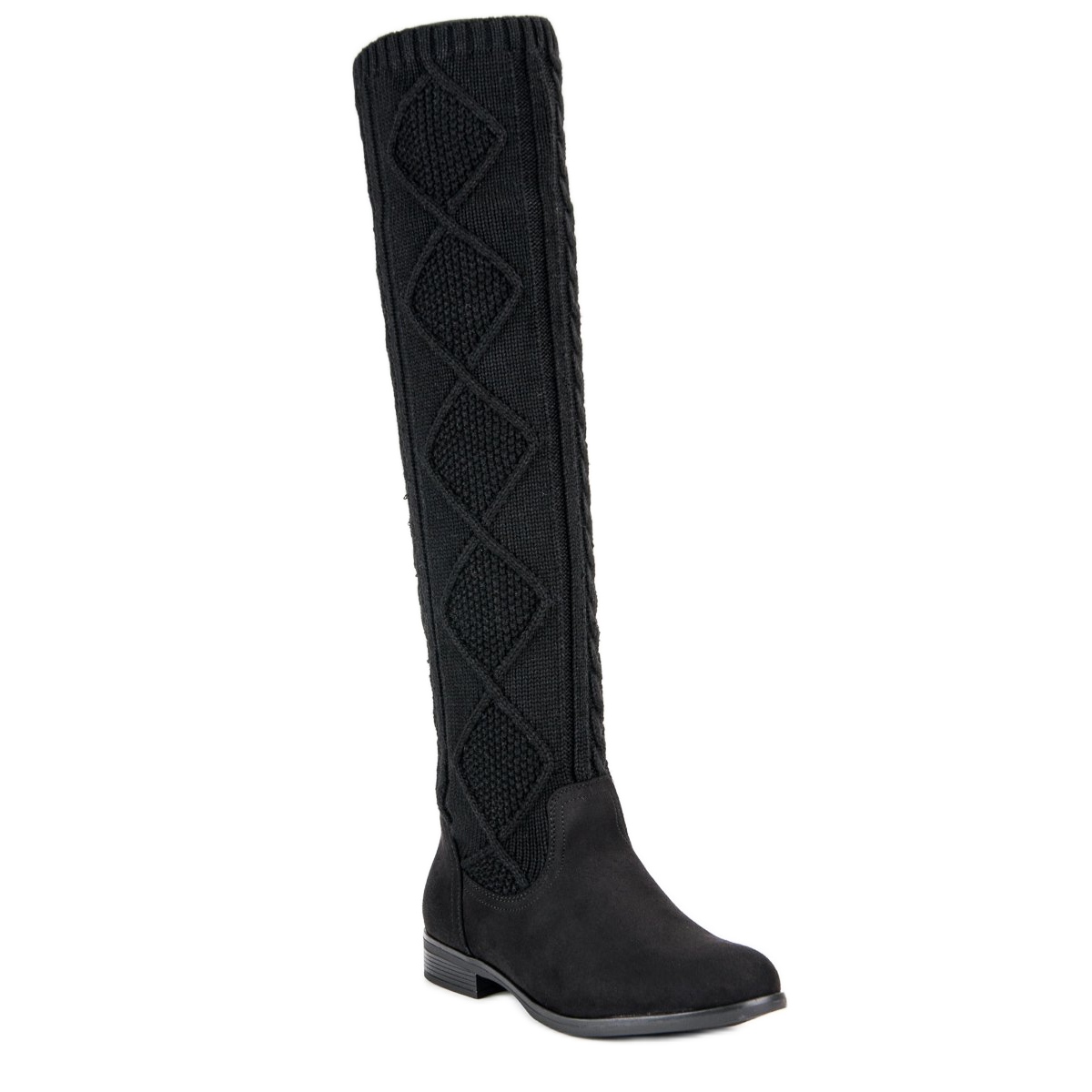 Ezek a térd feletti csizmák merevített sarokkal rendelkeznek, amely karaktert és stabilitást ad. A szintetikus anyagból készült futófelület garantálja a tapadást és a kényelmet járás közben, az időjárási viszonyoktól függetlenül. A 2,5 cm-es lapos sarok tökéletes mindennapi cipővé teszi őket, amely farmerhez és ruhához egyaránt viselhető.