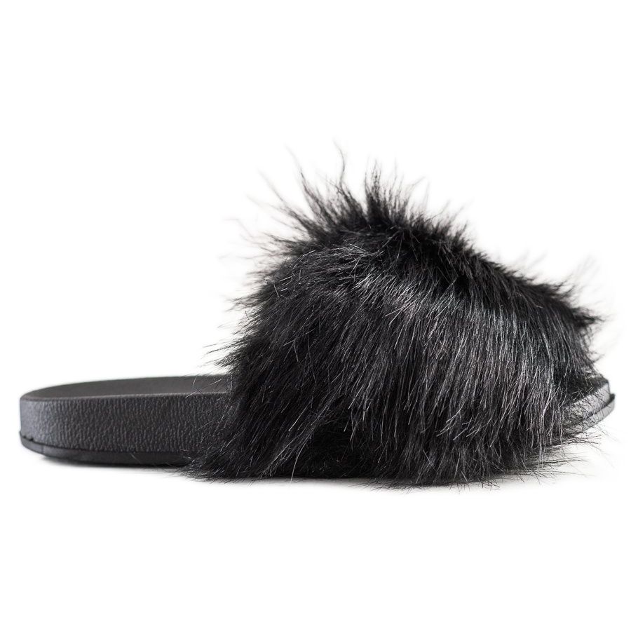 SHELOVET SHELOVET Stílusos papucs szőrmével fekete