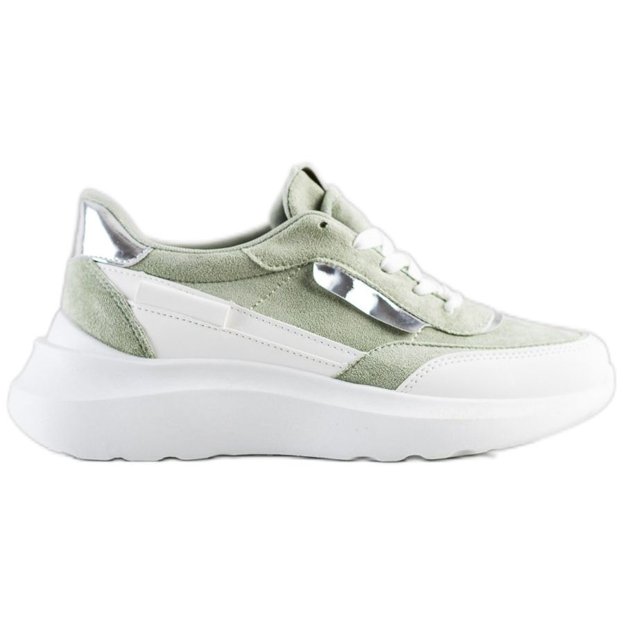 SHELOVET SHELOVET Stílusos velúr cipők fehér zöld