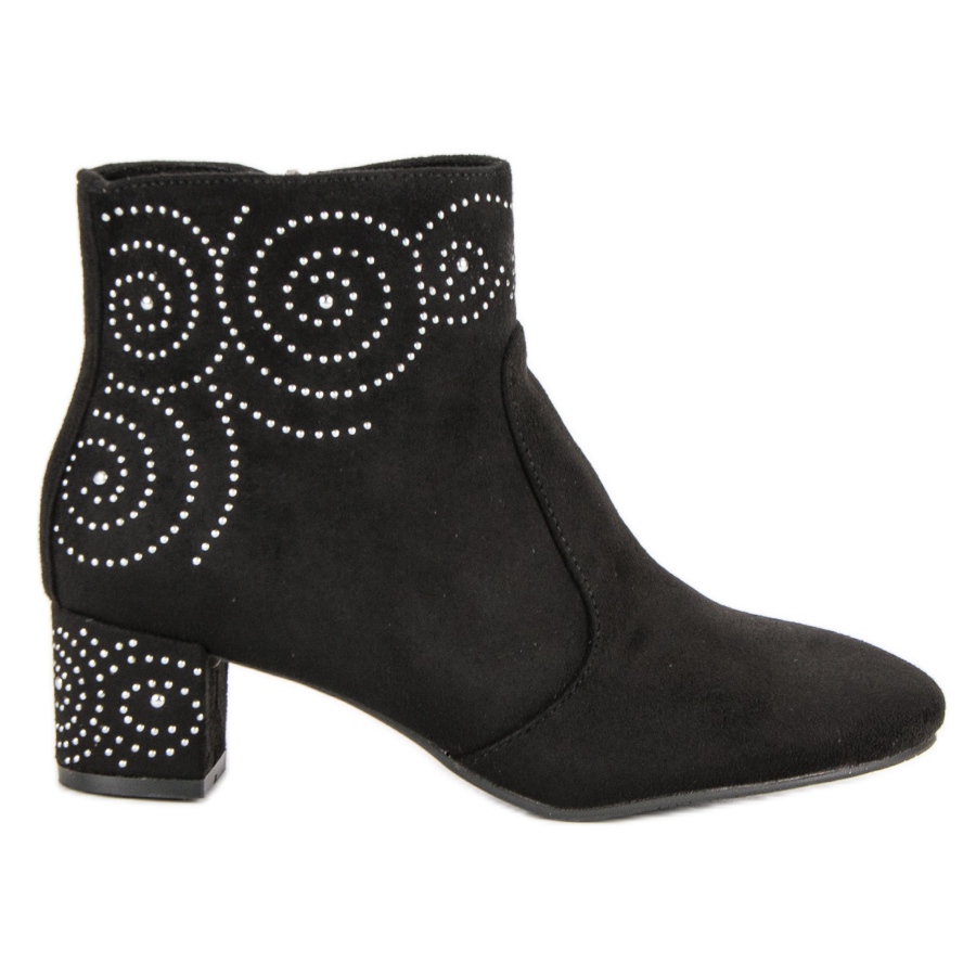 A kerek orrnak és a cipzárnak köszönhetően gyorsan és kényelmesen felteheti őket a lábára. Az 5 cm-es sarokmagasság nemcsak stílusossá, hanem praktikussá is teszi őket - tökéletes a mindennapi stílushoz. Ezenkívül a velúron és a sarkakon lévő strassz formájú díszítések egyedi karaktert adnak nekik, megkülönböztetve őket más modellektől.